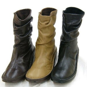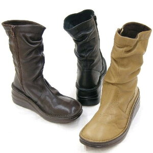 日本製 本革 ミドルブーツ レディース レザー ブーツ 厚底 ウェッジ ミドル ショート くしゅくしゅ コンフォートブーツ 黒 ブラック ブラウン