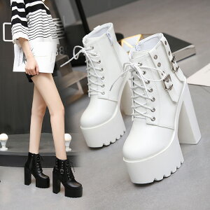 14CM 厚底ショートブーツ 太ヒール レディース ベルト厚底ブーツ ブーティー ハイヒール レースアップブーツ 編み上げブーツ サイドジッパー 前厚 厚底ブーツ ハイカット ミドルブーツ 袴ブーツ 卒業式 衣装 ブーツ 黒 白