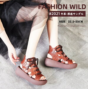 厚底サンダル レディース サマーブーツ 牛革 パンチングレザー カジュアル ショートブーツ レディース アンクルブーツ ミドルブーツ ブーツサンダル 編み上げ 歩きやすい 痛くない 厚底ヒール6cm 本革 夏靴 通勤 通学 サンダル 送料無料