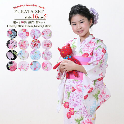 特価 人気柄 浴衣 子供 女の子 浴衣セット 選べる子供浴衣&帯の2点セット (浴衣全16種)(全5サイズ) 110cm 120cm 130cm 140cm 150cm 4柄×4色展開 和がままシリーズ レトロ 古典柄 ykt-k1k2k3k4 z
