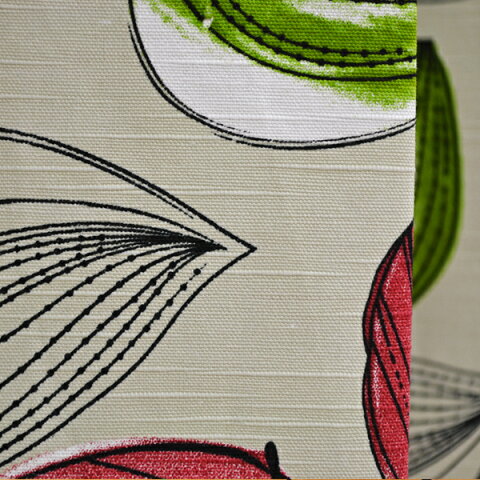 これぞ北欧!というこちらのカーテンはライトグレーの生地に濃いめのピンク花をポイントに。