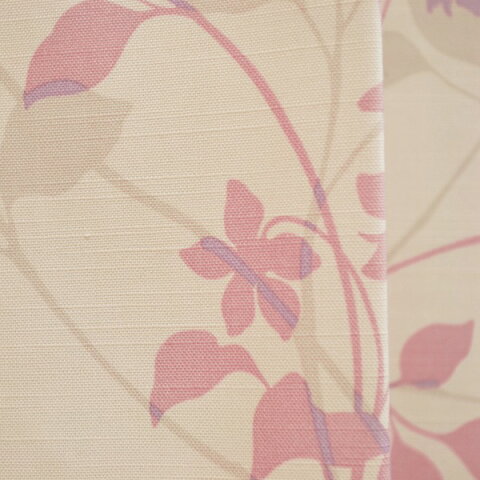 Pinkピンク生成りにパープル系のピンクで描いた葉をモチーフに可愛らしさを演出しています。