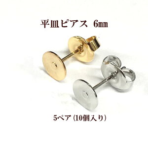 基礎金具 平皿ピアス 6mm 5ペア(10個入) 国内メッキ 金具 パーツ ハンドメイド クラフト アクセサリー