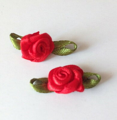 巻きバラ葉つきのお花の飾り(レオタードやバレエシューズをカスタマイズ)2個セット バラの花びらがいっぱいのフラワーモチーフ 無地でさびしいレオタードやバレエシューズも この小花のモチーフを縫い付けていただくと印象が大きく変えられて お手元の古いレオタードもよみがえりますよ♪